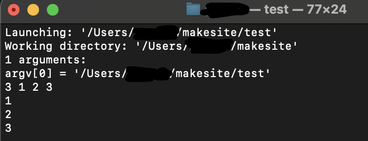 例として用意したプログラムでは、最終的にこのようになります。横並びの3 1 2 3が入力で、縦並びの1 2 3が出力です。またこの際、プログラム中で改行を行っていないと、値が出力されないので、注意しましょう。